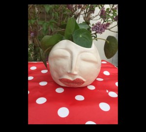 Tête à plante en terre cuite, émaillée. vendu